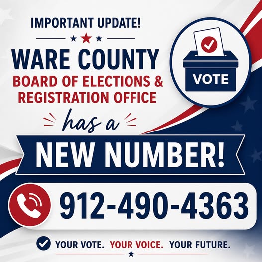 The Registration and Elections Department is responsible for conducting elections in Ware County and registering voters who reside within Ware County. The Ware County Board of Registration and Elections has jurisdiction over the Department of Registration and Elections.